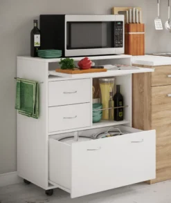 VCM Holz Küchenwagen Servierwagen Rollwagen Ablage Rollbar Rollen Schublade Kicha Weiß