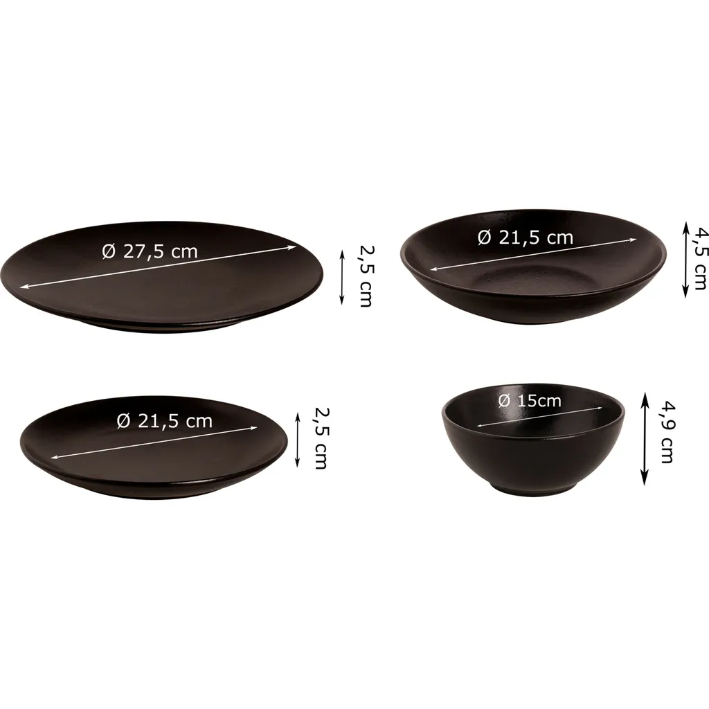 CreaTable 33320 Tafelservice Rondo Schiefer Für 6 Personen, Steinzeug, Schwarz (1 Set, 12-teilig)