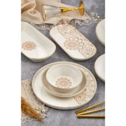 Tafelservice Palazzo 12tlg. – Weiß MitNachbildung-Kreisen In Grau Und Dunkelrot – Für 6 Personen