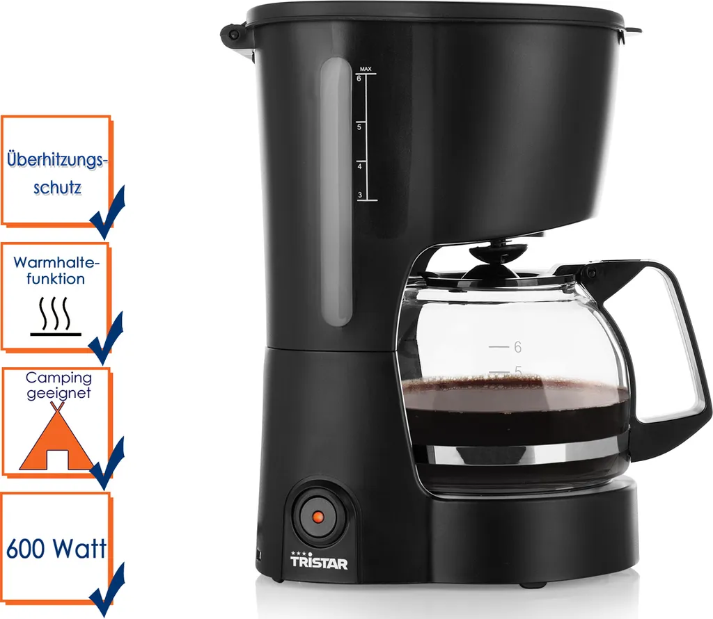 | Zusätzliche Varianten | Tristar CM-1236 Kaffeemaschine 1,2 Ltr., Tristar Kaffeemaschine CM-1245 750 W 1,25 L, Tristar Kaffeemaschine CM-1246, 600W, 0,6L |